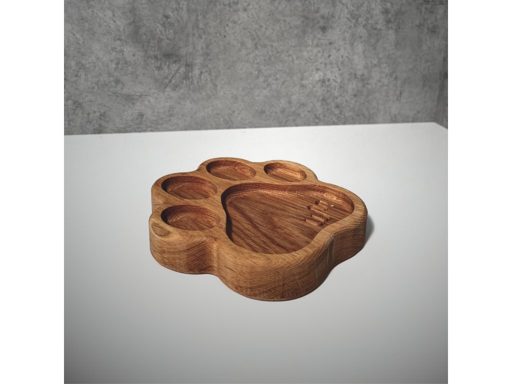 Dřevěný servírovací tácek Tlapka spojuje přírodní krásu s funkční elegancí. Díky svému originálnímu tvaru a ručnímu zpracování se stane jedinečným doplňkem každého stolování.