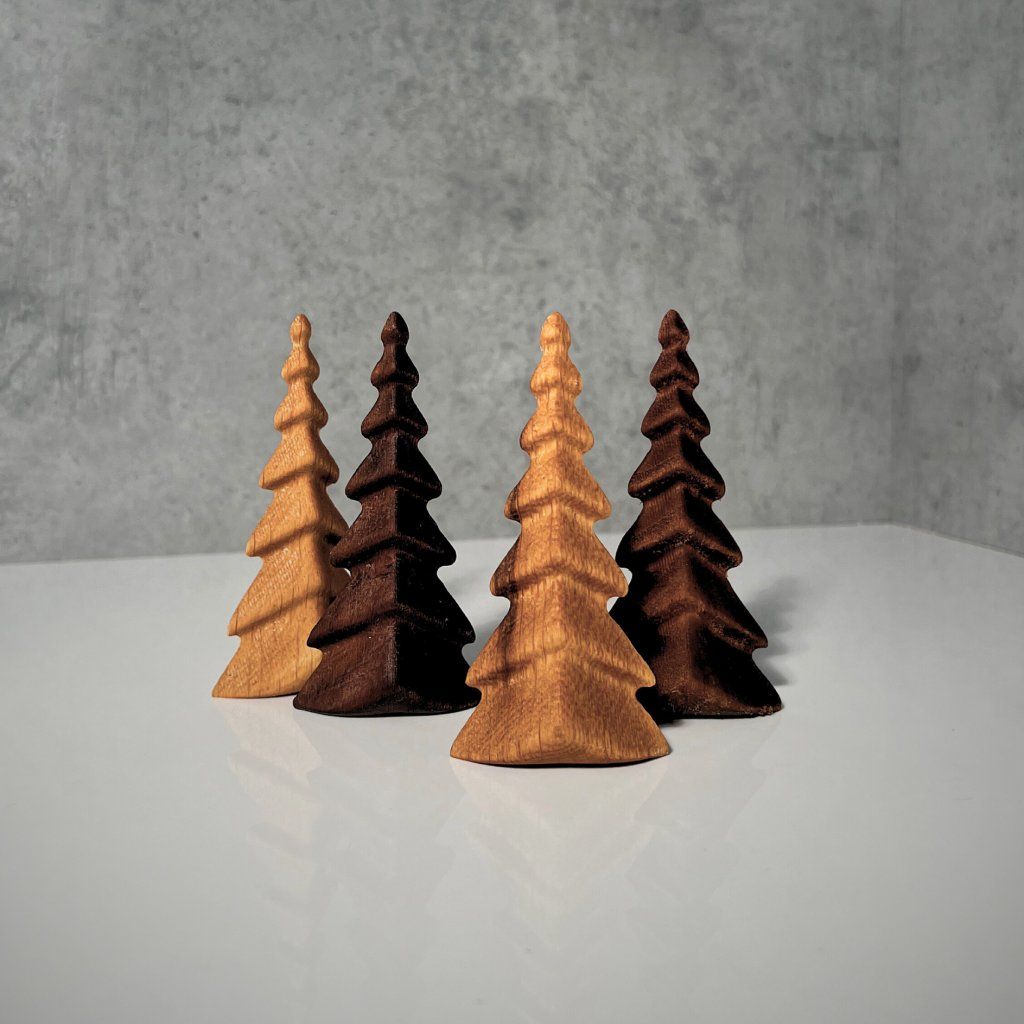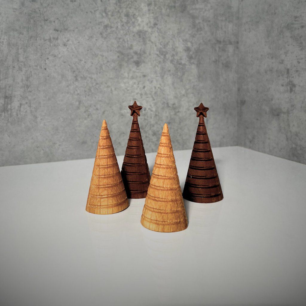 Oak & Walnut Wooden Christmas Tree Figurines