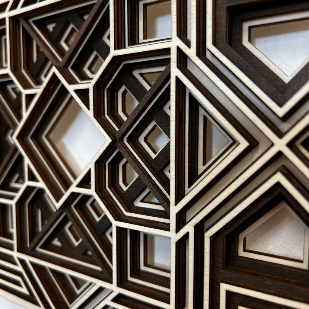 The Wooden Geometric Wall Art made from poplar plywood is a unique piece that combines modern aesthetics with natural materials. Five layers of wood create captivating geometric patterns, bringing depth and dynamism to any space. This artwork is the perfect choice for those who love modern art and appreciate the beauty of natural materials.