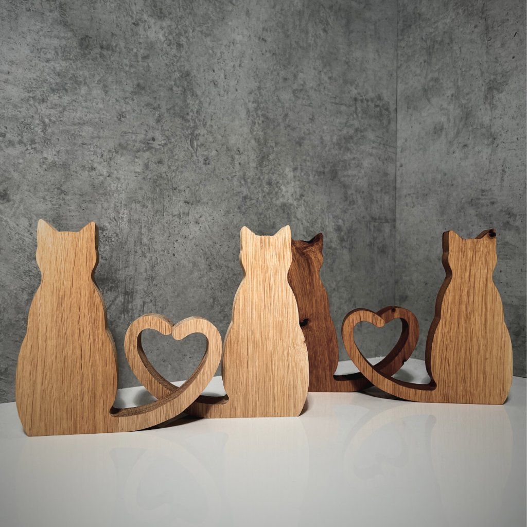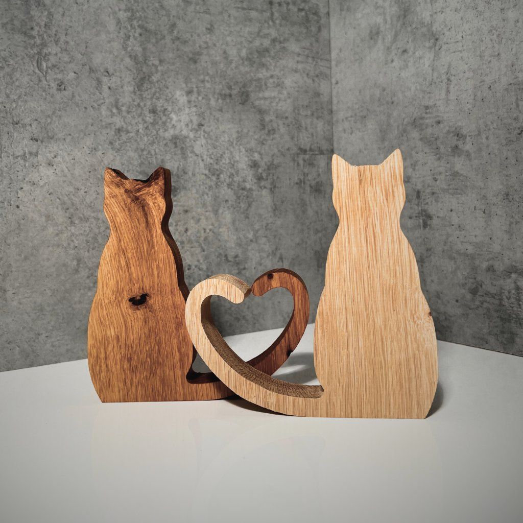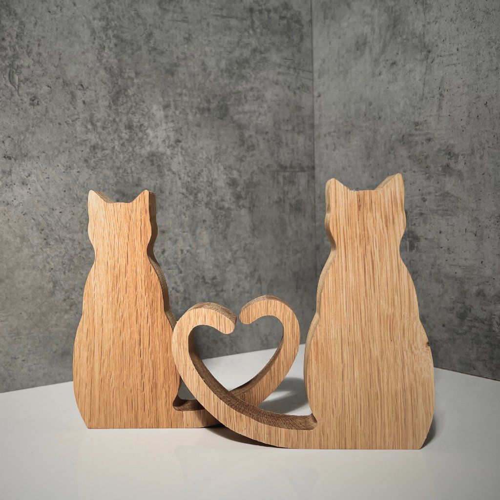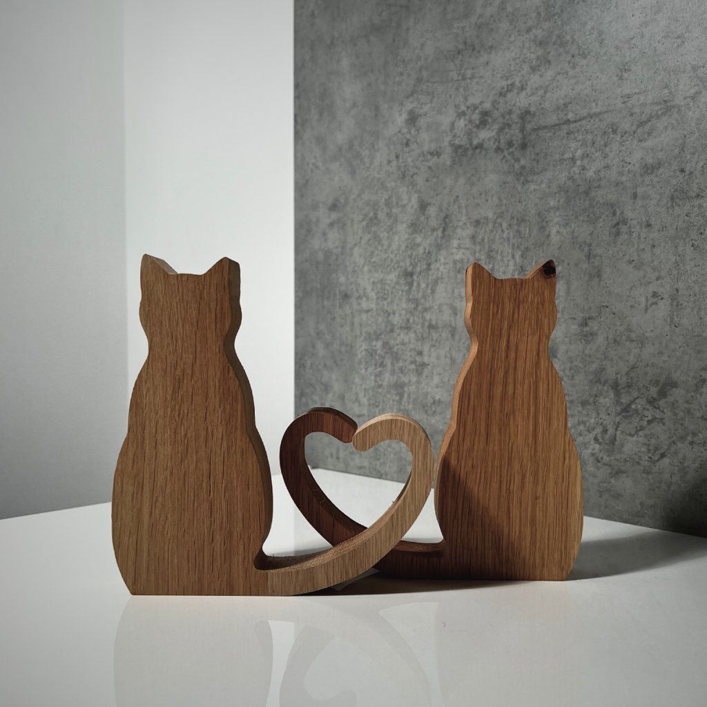 Introducing our precious wooden cat figurines, which come in a set of two, depicting a pair of adorable kitties with tails that join to form a heart, reminding you of the value of closeness and love.