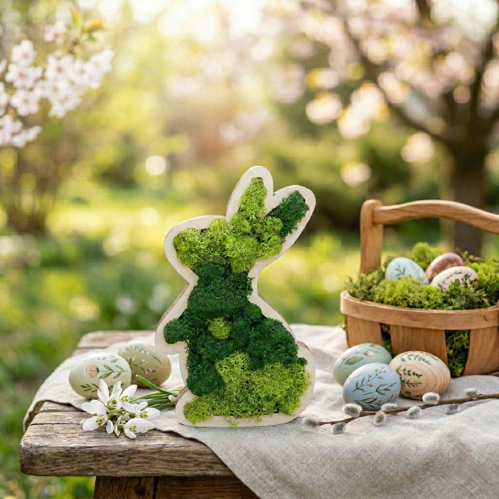 Wooden Easter Bunny Decoration with Stabilized Moss