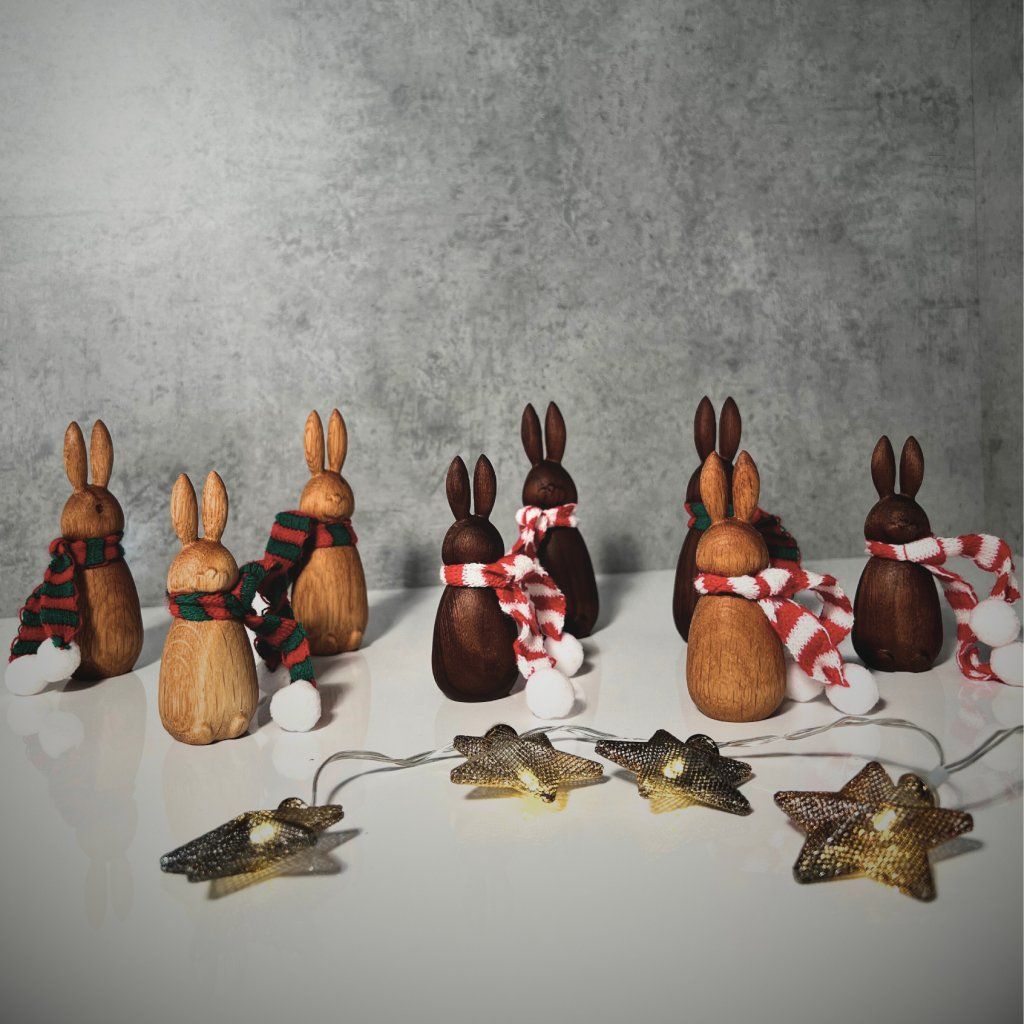 Especially for the holiday season, we’ve introduced a special collection with scarves that give these wooden bunnies extra charm and a festive vibe. These little details make them a stylish addition to your winter décor.