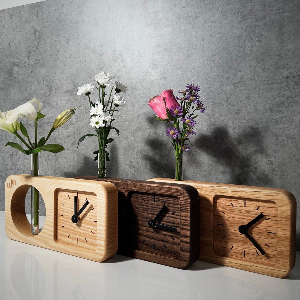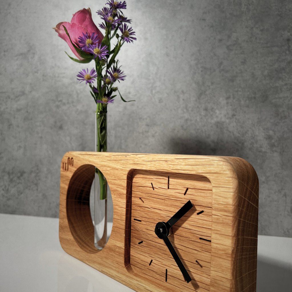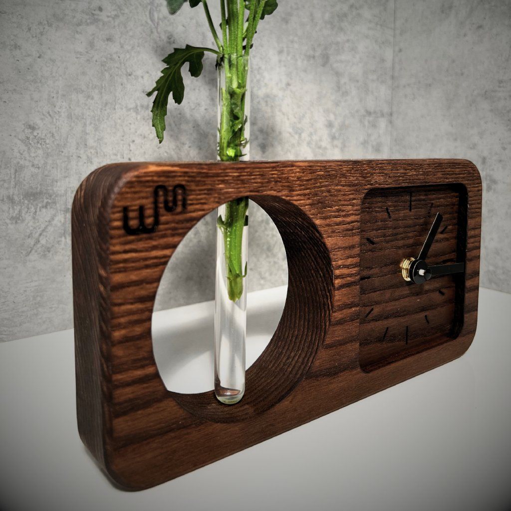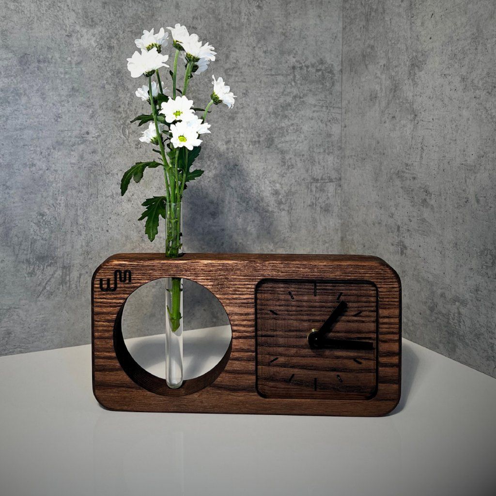Bring Nature into Your Home with Our Wooden Table Clock with Flower Ampoule