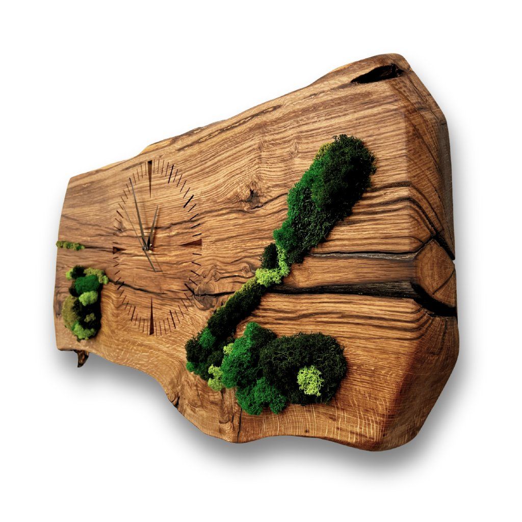 Add a touch of nature to your space with our handcrafted wooden moss wall clock. Made from reclaimed 100-year-old wood, it’s a unique, low-maintenance decor piece requiring minimal care (although, please note that the moss should be placed in an environment with a humidity of above 40%). The pictures are illustrative. Each clock is made from an original piece of wood.