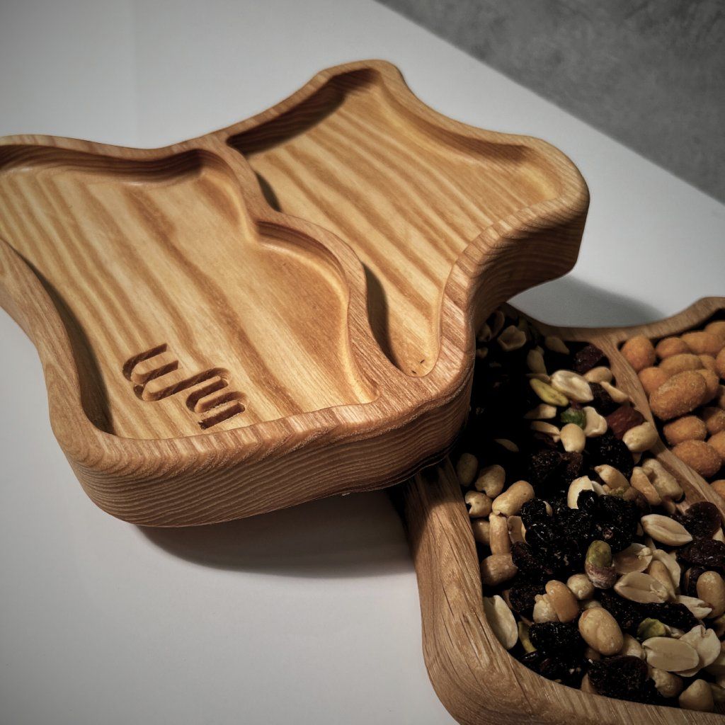 Uniquely Shaped Wooden Serving Tray for Snacks