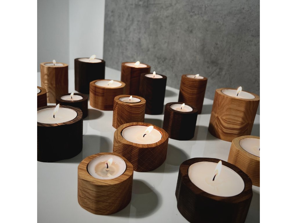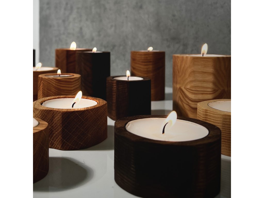 Zajímavé a minimalistické dřevěné svícny na čajové svíčky