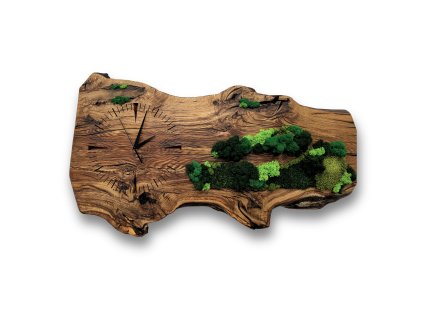 VÝROBA NA ZAKÁZKU! Tvar může mírně lišit – každé hodiny jsou unikátní. Unikátní dřevěné hodiny s mechem spojují přirozenou krásu stabilizovaného mechu a eleganci 100letého...