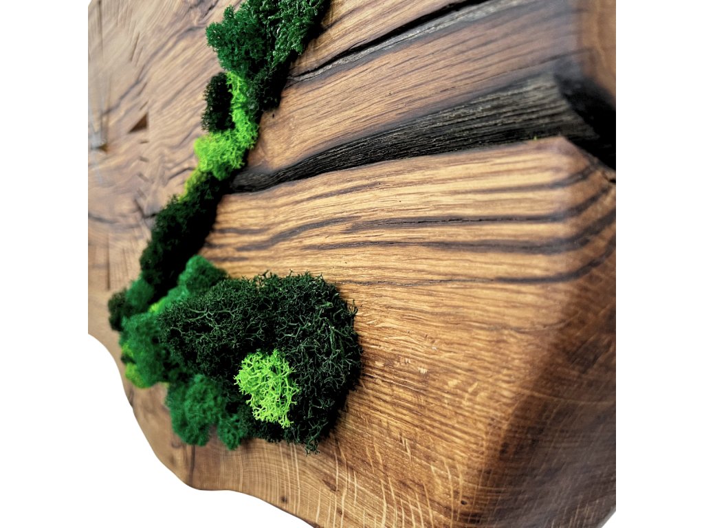 Estetika: Spojení 100letého dřeva a mechu tvoří harmonický a dekorativní design.