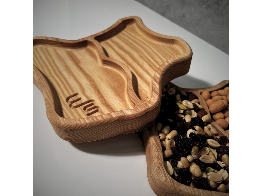 Dřevěný servírovací tác Vlnka je elegantní a praktický doplněk, který zaujme svým unikátním tvarem a dvěma oddělenými sekcemi pro zákusky, sýry, ovoce nebo oříšky. Perfektně kombinuje funkčnost s estetickou přitažlivostí, takže vaše stolování získá styl a eleganci.